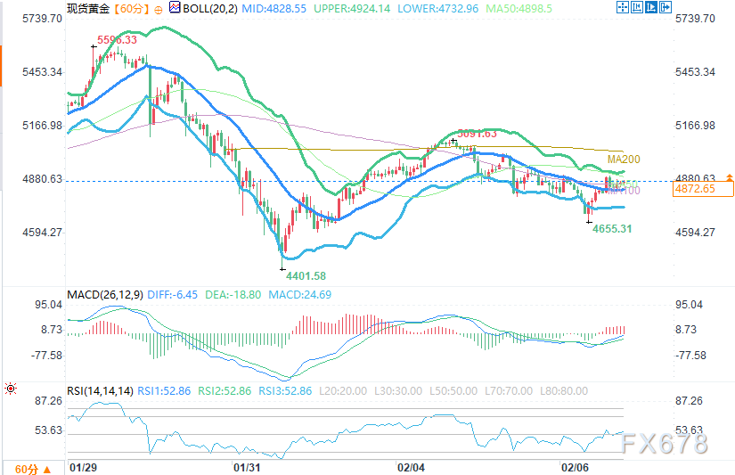 然而,潜在限制因素不容忽视。美国总统特朗普表示,若凯文·沃什(Kevin Warsh)有加息意愿,他当初就不会提名其为美联储主席,并强调联储降息“几乎没有疑问”。但市场担忧沃什作为即将上任的联储主席人选(已于1月30日获提名)可能采取较不鸽派立场,这或限制金价进一步上行空间。今日稍后,密歇根消费者信心指数初步值、通胀预期数据以及联储官员表态将成为焦点,将直接影响美元需求和金价走势。总体而言,金价短期获避险回暖、美元疲软及降息预期三重支撑,但地缘谈判结果和联储政策信号仍存不确定性。投资者需警惕波动加剧,建议关注4,900美元上方阻力与4,700美元下方支撑。