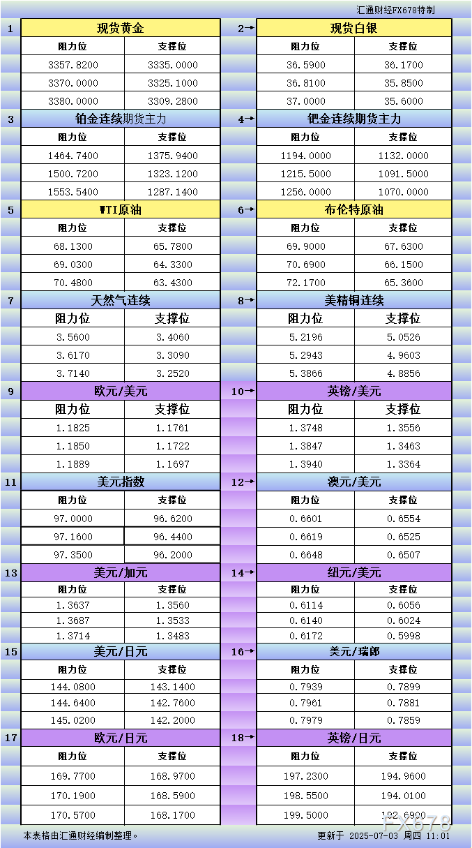 VT官网官网7月3日亚市更新支撑阻力:18品种支撑阻力(金银铂钯原油天然气铜及十